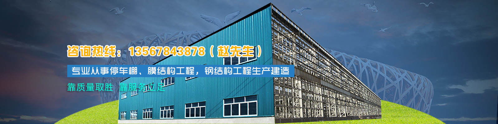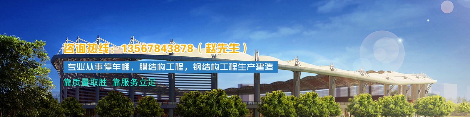 寧波豪睿鋼結(jié)構(gòu)裝飾工程隸屬于寧波豪睿廣告有限公司,公司專(zhuān)業(yè)從事停車(chē)棚、膜結(jié)構(gòu)工程,鋼結(jié)構(gòu)工程的專(zhuān)業(yè)公司。公司位于浙江寧波,交通十分便利。公司一直致力于營(yíng)造精品建筑膜工程的核心能力與建樹(shù),摒棄甲方乙方買(mǎi)賣(mài)關(guān)系的傳統(tǒng)定位,把客戶(hù)和合作的關(guān)系轉(zhuǎn)化為朋友和伙伴的關(guān)系,希望與客戶(hù)建立一種項(xiàng)目協(xié)作的新型紐帶,力求為客戶(hù)提供專(zhuān)業(yè)性、技術(shù)性、互動(dòng)型、一站式的陽(yáng)光服務(wù)。經(jīng)過(guò)多年的打拼,豪睿膜結(jié)構(gòu)的誠(chéng)信、實(shí)力和產(chǎn)品質(zhì)量獲得業(yè)界的認(rèn)可??抠|(zhì)量取勝,靠服務(wù)立足”是我們永不放棄的信念;“以獨(dú)特創(chuàng)新,開(kāi)拓遮陽(yáng)新領(lǐng)域”是我們不斷的追求;“免費(fèi)安裝及全面的售后服務(wù)”是我們真誠(chéng)的承諾!